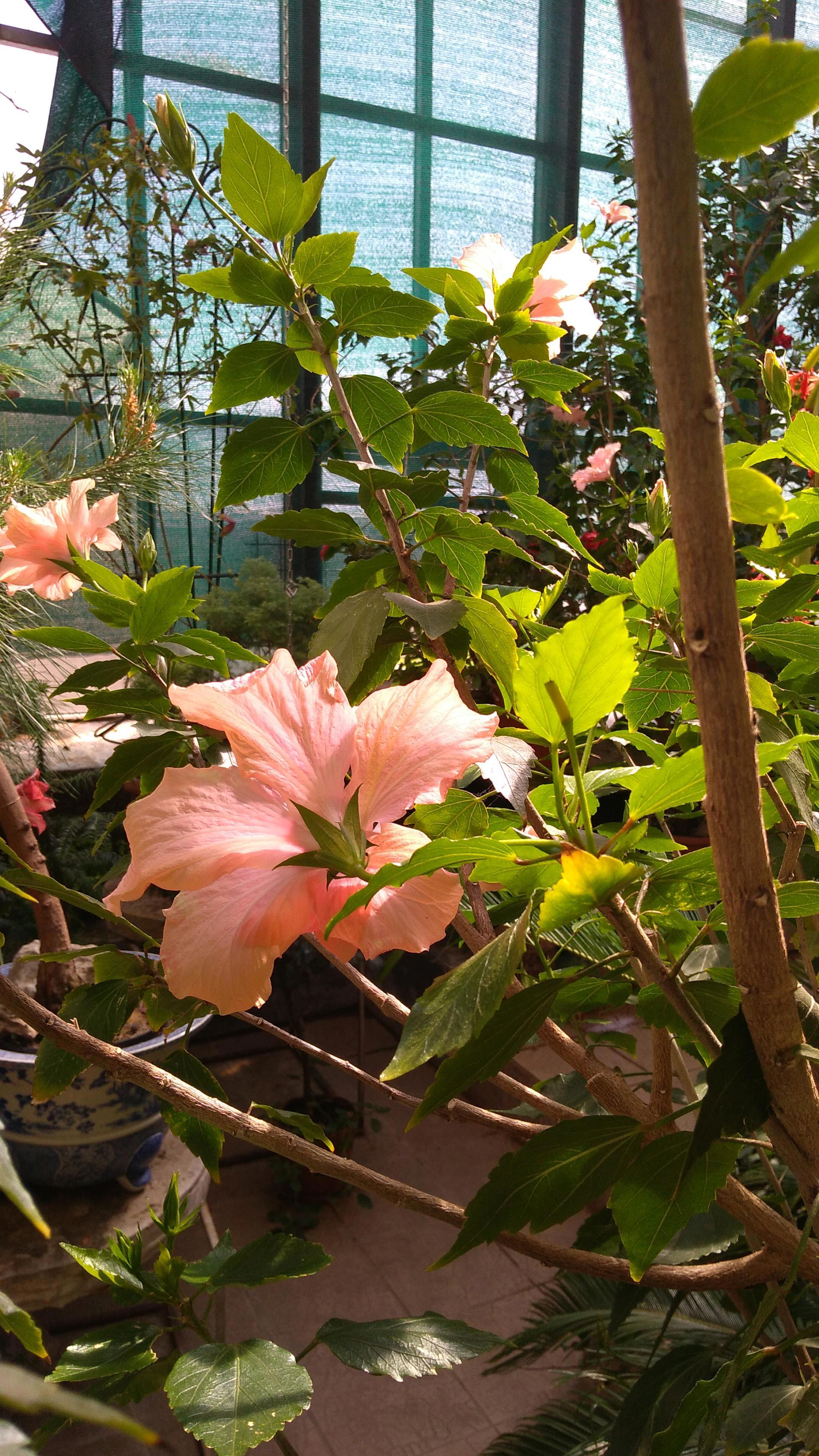 Говорят, где-то тут ещё растут древовидные пионы, но с тропы извне их не видно. Поэтому сфоткала в магазине в Ротонде, перед началом экскурсии по тропическому маршруту. Вместе с гибискусом из служебного помещения на выращивании и откорме.