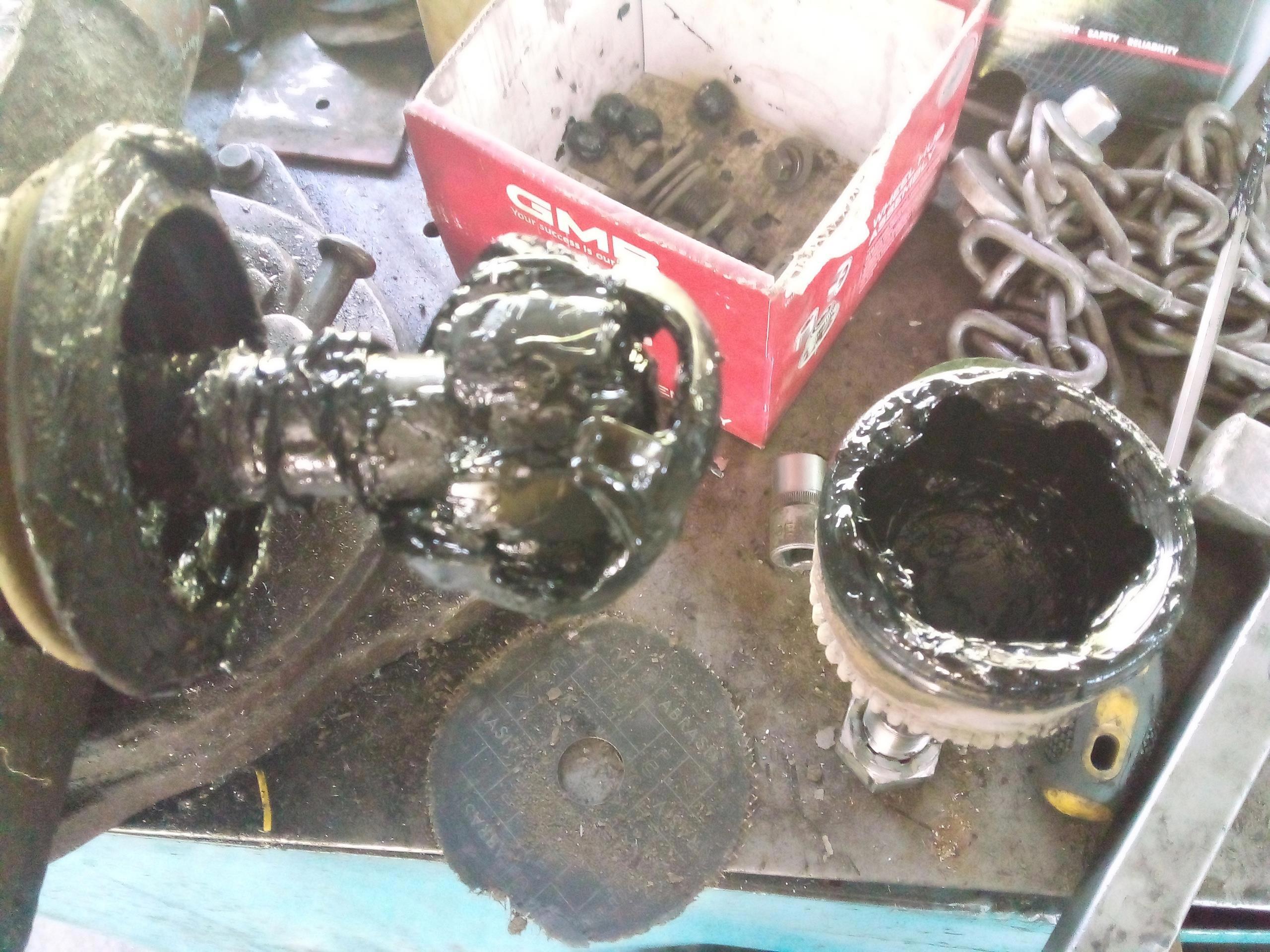 Выпилил кусочки обоймы шариков и выковырял их по одному, наружняя часть шруса сбилась.