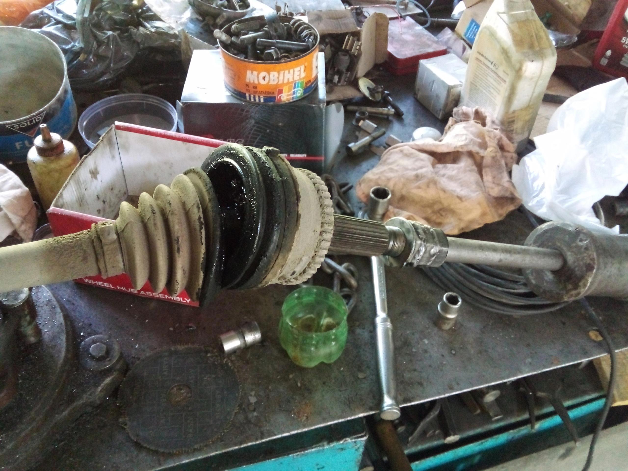 А шрусы наружние тут подлые - они не сбиваются, их можно только спилить. (на фото обратный молоток прикручен в шрусу.