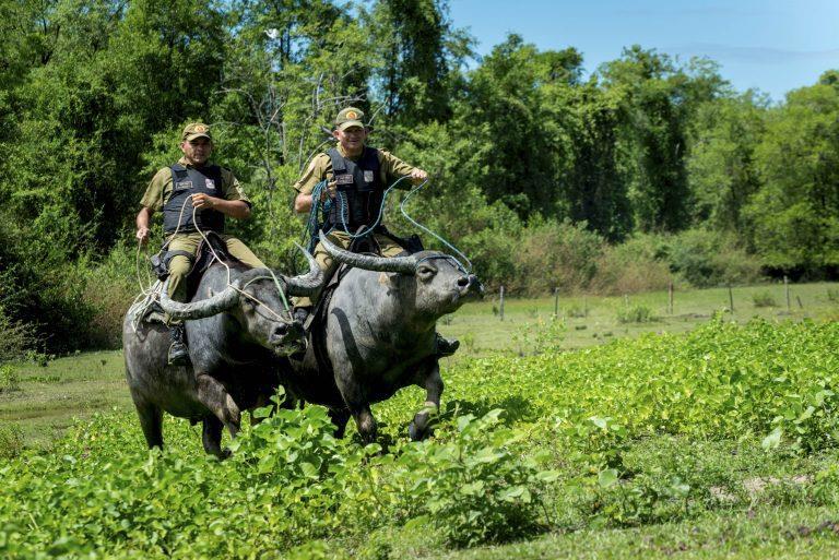 Как оказалось, практика патрулирования улиц на водяных буйволах традиционна в этой местности. Опять же туристов привлекают.