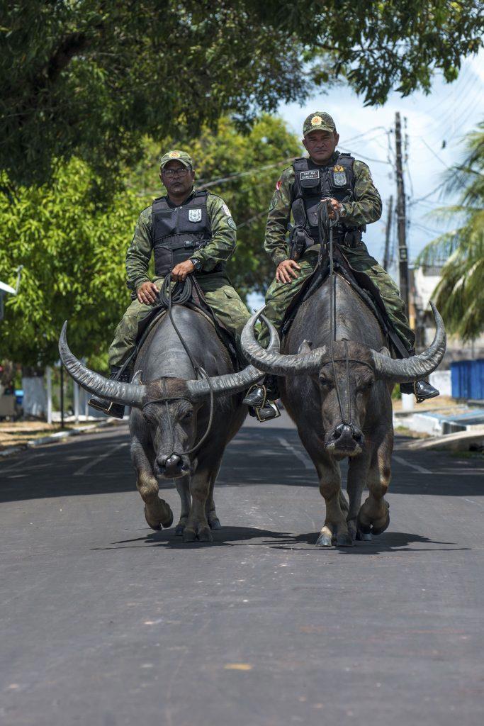Ничего необычного, просто два офицера военной полиции патрулируют улицы на двух огромных водяных буйволах