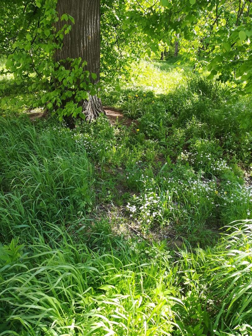 А сейчас будет красота, прекрасные деревья и пение птиц, столько зелени, еще нашла какие то неведомые белые цветочки, наверняка редкокнижные, поэтому обошла их, чтобы не наступить: