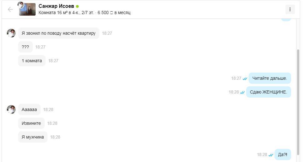 Только что пришло мне в чат на Авито: