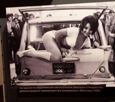 Реклама "Москвича" на одной из европейских выставок. Да-да, секса в СССР не было, а это просто бизнес - ничего личного.