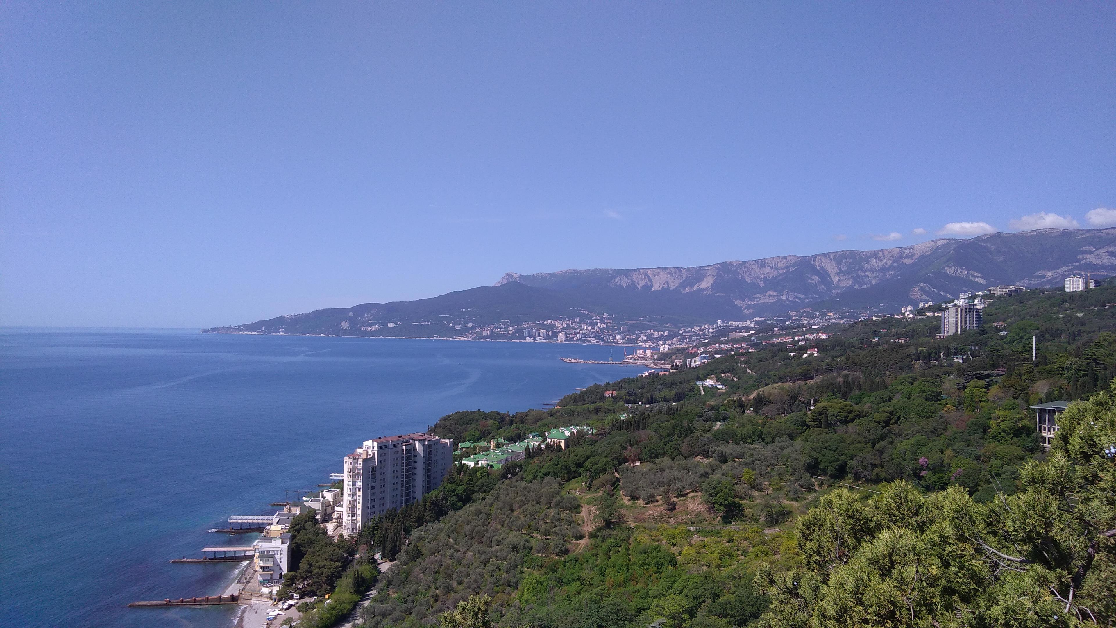 Вид на Ялту с царской площадки сегодня (нижний кадр) и неподалеку от нее.