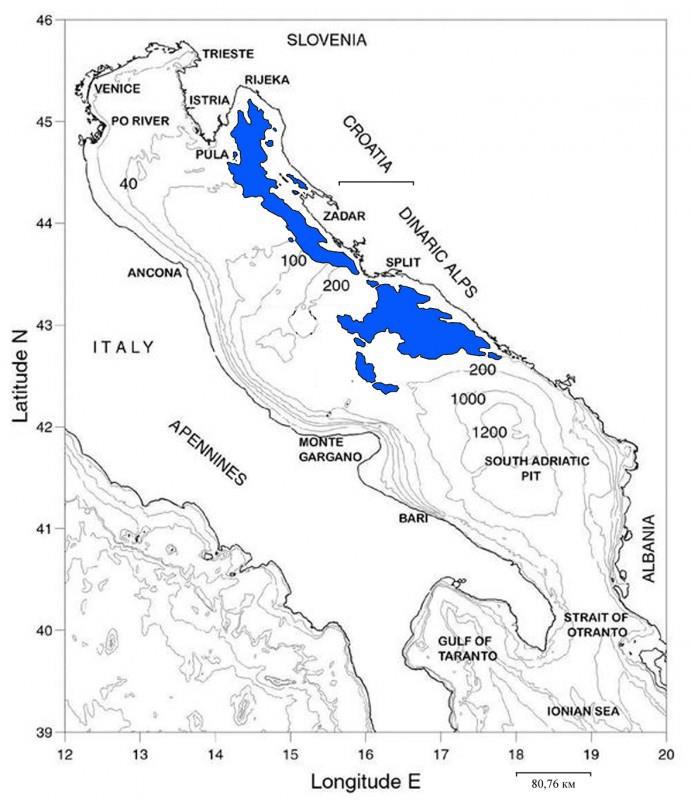 Архипелаг, расположенный вдоль восточного побережья Адриатического моря, в северной и средней его частях.