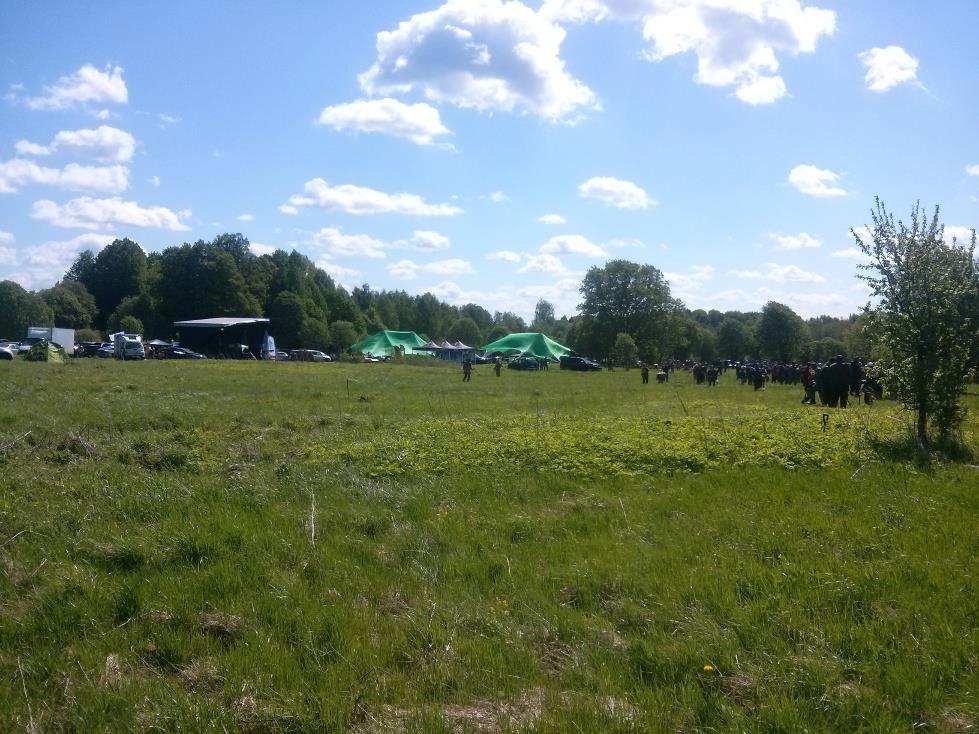 На месте нас уже ждал Тимур. Кто не знает Тимура из 12 талеров? Его знают все опытные кладоискатели. И мы подрулили аккурат к его диспозиции, встали там на лучшем месте, поблизости от сцены. На фото наша позиция как раз сценой и закрыта. Но если увеличить, то можно увидеть у сцены флаги - и это флаги 12 талеров. А мы стало быть где-то за ними. Справа от нас стояла "Непра" с поисковыми магнитами, это конкурент "РедМаг", основанный выходцем из "РедМаг". А слева от нас встали маджики со своими катушками. Катушки да не с нитками, а те катушки что антенны для металлоискателей. Их заменять можно. Большая катушка - больше глубина поиска. Но меньше точность. Маленькая очень точно берёт цель, но глубина небольшая. Такой вот баланс, и всяк кладоискатель подбирает себе по своим соображениям. О том подробнее в моём учебнике кладоискательства: