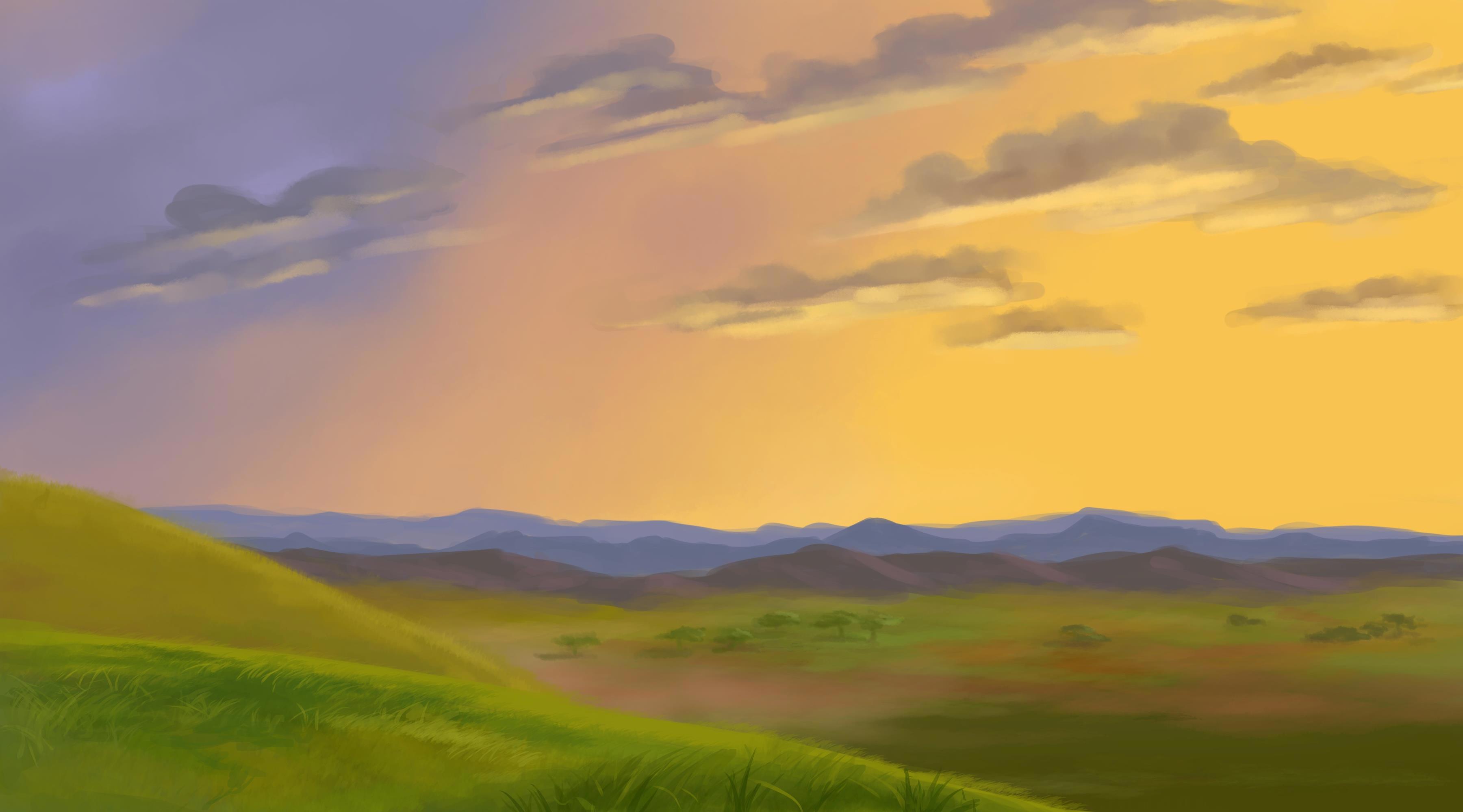 Серия стадиков по фонам из "Короля льва". От жадности я нащёлкала больше сотни скриншотов, но пока осилила только шесть, каждый из которых занял от 30 минут до 5 часов. Не знаю, на сколько в итоге меня хватит, но даже эти дали много полезного в понимании цветов, заставили покопаться в кистях, найти и сделать несколько новых, переосмыслить используемые приёмы.