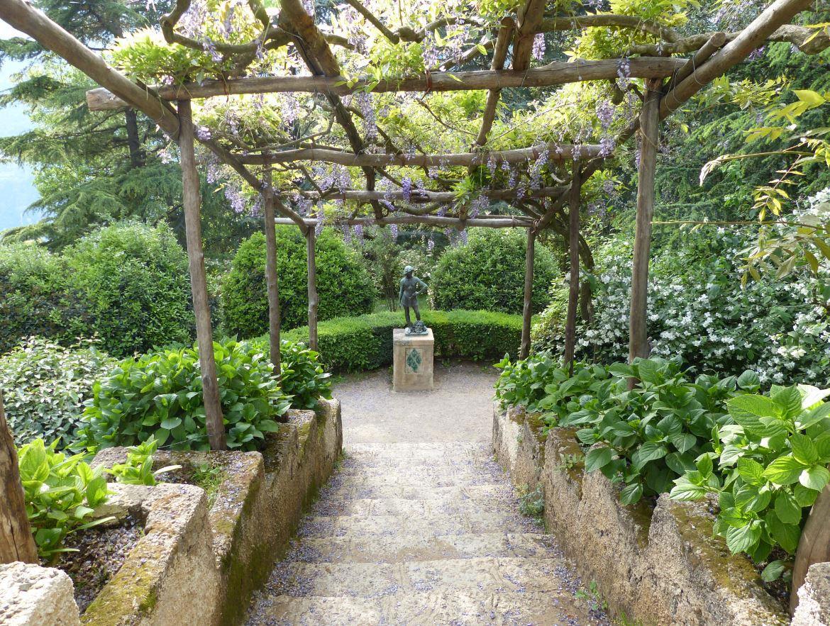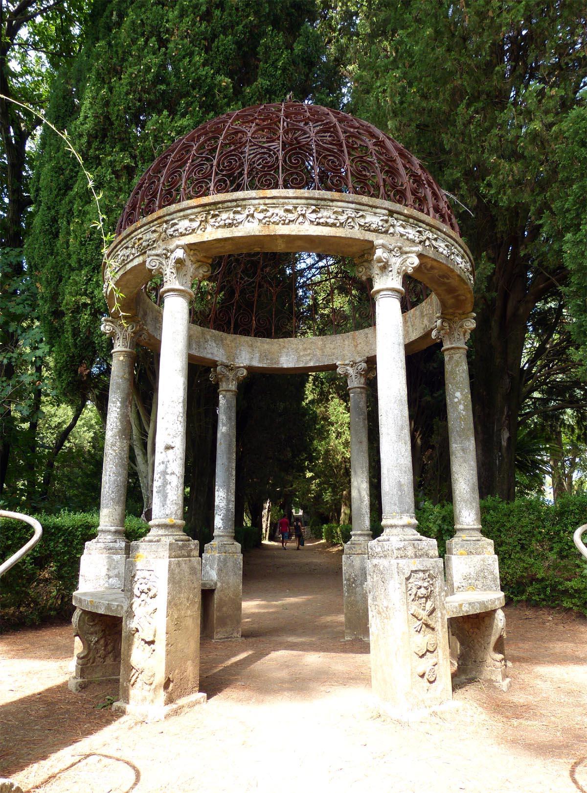 В парке, помимо теннистых аллей и розария, имеются также довольно традиционные постройки: беседка, грот, храм Цереры, храм Бахуса и даже статуя Давида.