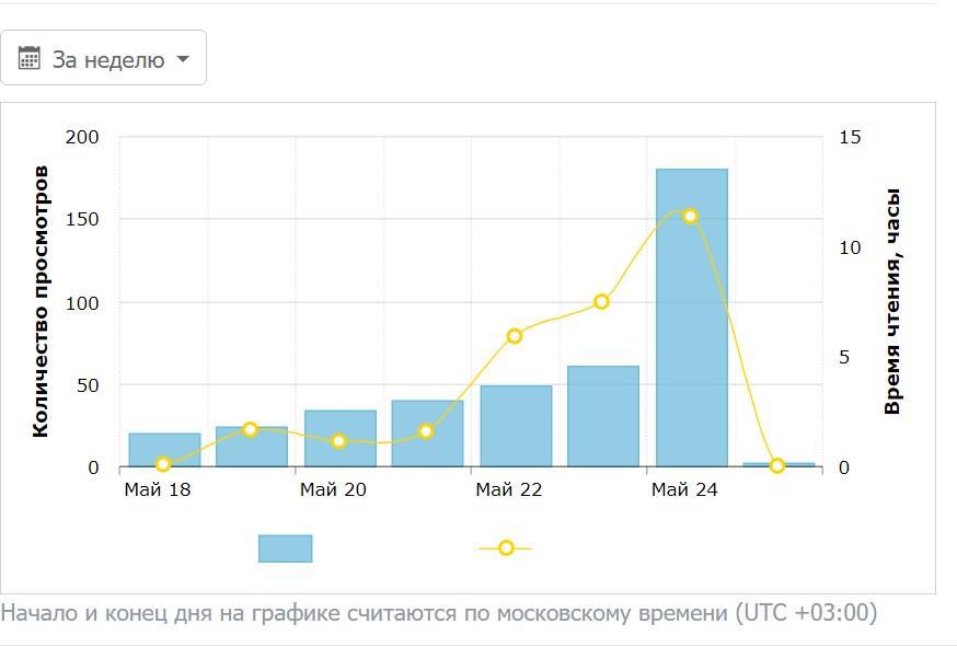 Количество просмотров увеличилось в 3 раза, время чтения - в 2 раза.