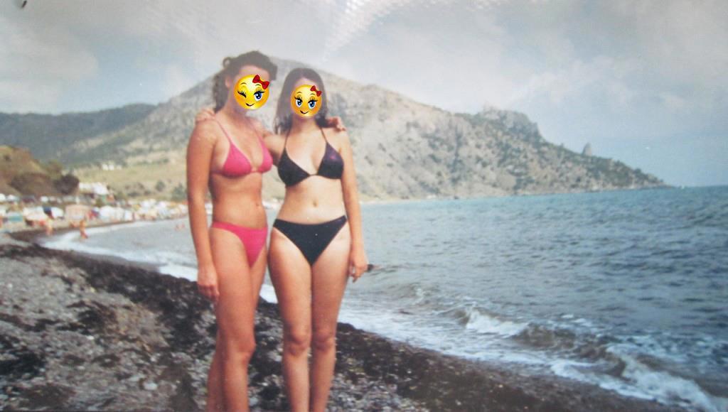 В тот раз мы с сеструхой ехали на море отдельно от ее родителей поездом. И на фото запечатлен именно тот момент, когда мы только приехали и идем купаться в первый раз, переодевшись по-быстрому, а нас встречают с фотоаппаратом! Та поездка была с небольшим приключением. Сестра попросила родственницу связать ей купальник — тагды мода была на такие. Та связала его слишком больших габаритов, не зная, что сестра похудела, и передала ей этот купальник с посторонним человеком. Сестра не успела его примерить, уже было некогда. А в поезде посмотрела и ужаснулась: «В чем же я буду купаться?!» И вот, во время пересадки с одного поезда на другой, я потащила ее на ближайший рынок, мы выбрали первый-попавшийся купальник, и я все это дело оплатила из карманных денег, так как сестре такой суммы не оставили. Даже такси, доставившее нас в бухту, оплачивали взрослые уже на месте. Тогда же мы рисковали опоздать на поезд и остаться в Симферополе почти без копейки одни-одинешеньки, а это была наша первая самостоятельная поездка! Мы справились и очень этим гордились...