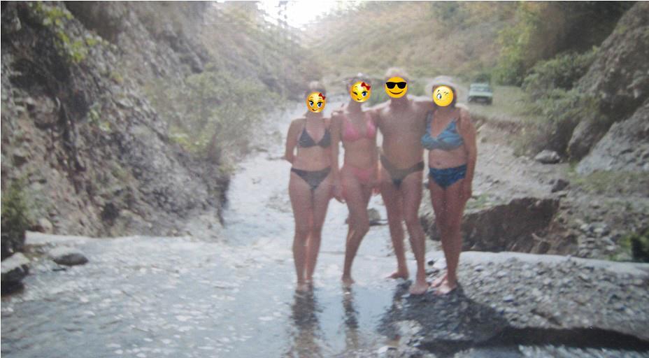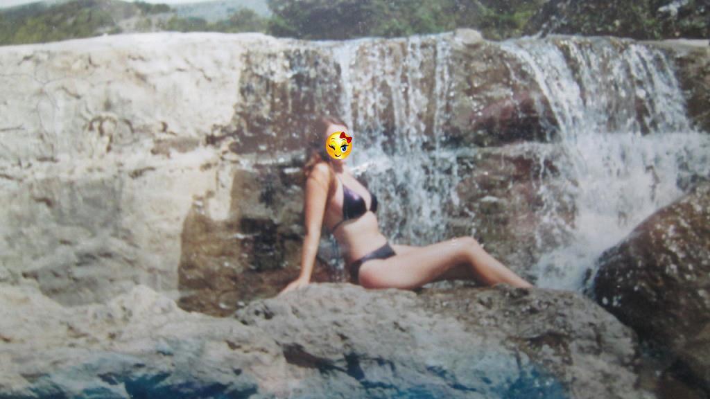 Дальше — я, молодая-красивая, втянув кое-как живот, позирую у горного водопада: