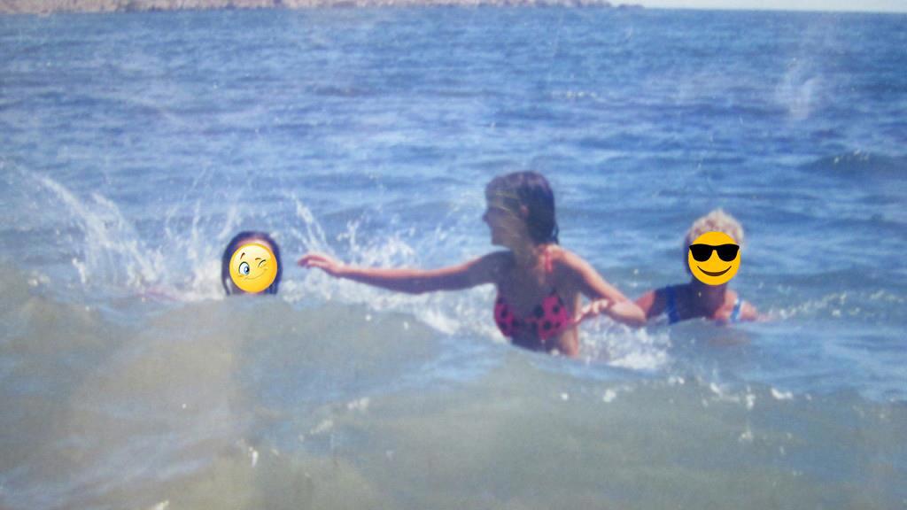 И, конечно, я — между сестрой и тетей, (последняя еще и моя крестная по совместительству). Барахтаемся на волнах. В жизни не скажешь, что мне вот-вот шестнадцать, правда?! Сегодня так выглядят дети в одиннадцать...