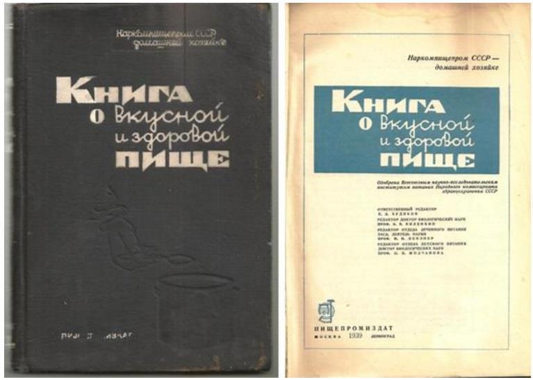 Тут автор очень кратко расскажет об истории кулинарных терминов в России последних двух веков. И напомнит о книге, которая в те времена была в каждой семье: "Книга о вкусной и здоровой пище». Первое издание вышло в 1939 году.