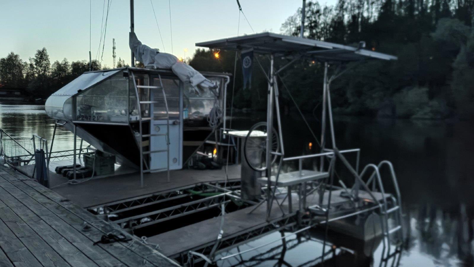 К плоту были приделаны две скамейки, чтобы отдыхать после парилки, а в воду спускалась лестница, чтобы после парилки не только отдыхать, но и плавать. Под небольшим навесом стоял столик с керосиновой плиткой. На нем высились бутылки с солью, томатным соусом и горчицей. Обычный трактирный набор, но здесь он смотрелся особенно забавно. Эмиль показал мне мачту и сказал, что попозже покатаемся, и что баня ещё не нагрелась. Они с Риром свинтили там вьюшку и пустили свежий воздух, потому что до этого там пахло грязными носками. Так и сказал. Вообще Эмиль был весел, будто бы уже выпил эля или чего покрепче. Ему все нравилось на этом плоту и он показывал мне каждую веревку, железяку и приспособу. Больше всего меня поразила щетка для обуви, прибитая в палубе гвоздями. Потрясающая аккуратность, вошел в обитель чистоты, изволь отряси прах с ног своих. Гениально!