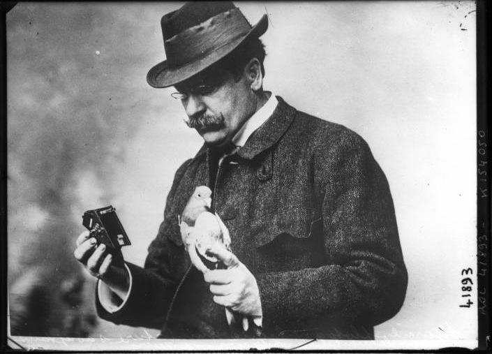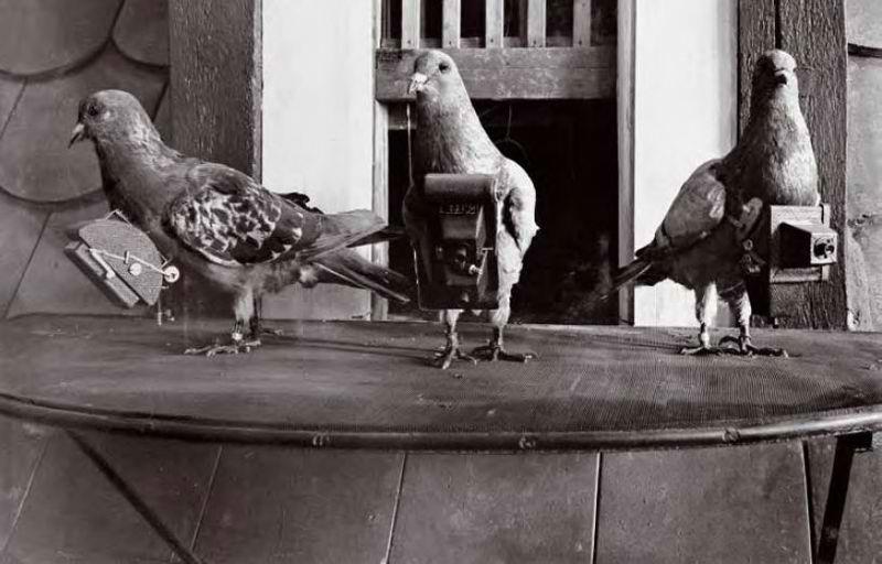 Зрители в Дрездене наблюдали за прибытием почтовых голубей, оснащенных камерами, а сделанные во время полёта фотографии немедленно проявлялись и превращались в открытки, которые можно было купить:)