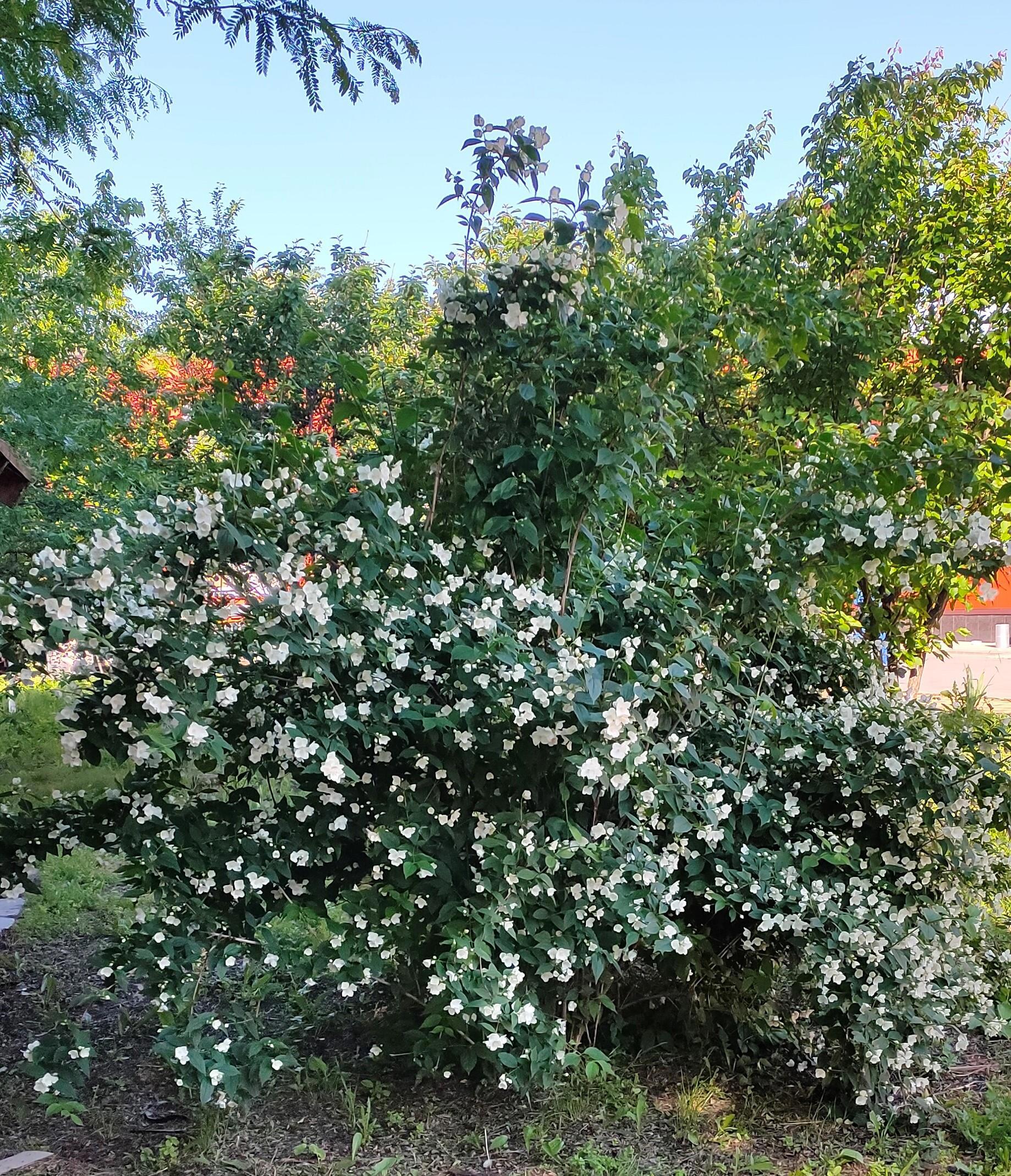 На последок вам фото нашего Кавказского чубушника (в народе жасмина). У нас весь город ими засажен. Аромат потрясающий на улицах.