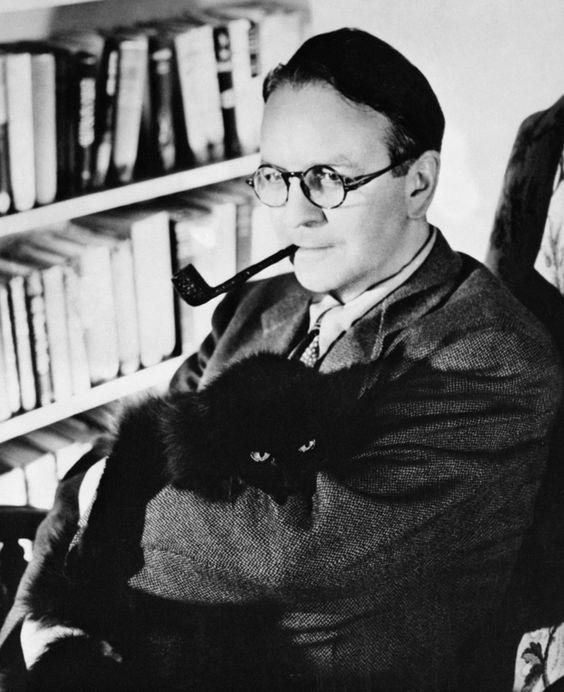 Великий Реймонд Чандлер и его черный кот (какой еще кот мог быть у автора знаменитых детективов?) Кот смотрит сурово и трезво (про Чандлера этого не скажешь).