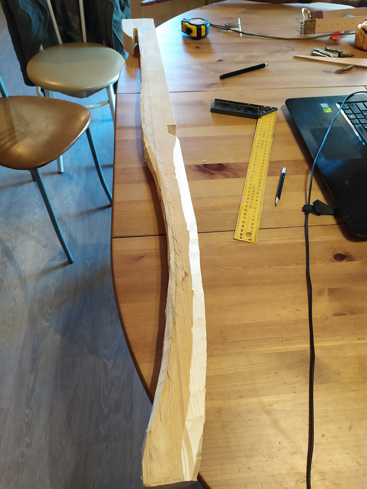 На экране ноута - то что должно получиться, на столе сосновая доска, еще даже не размеченная.
