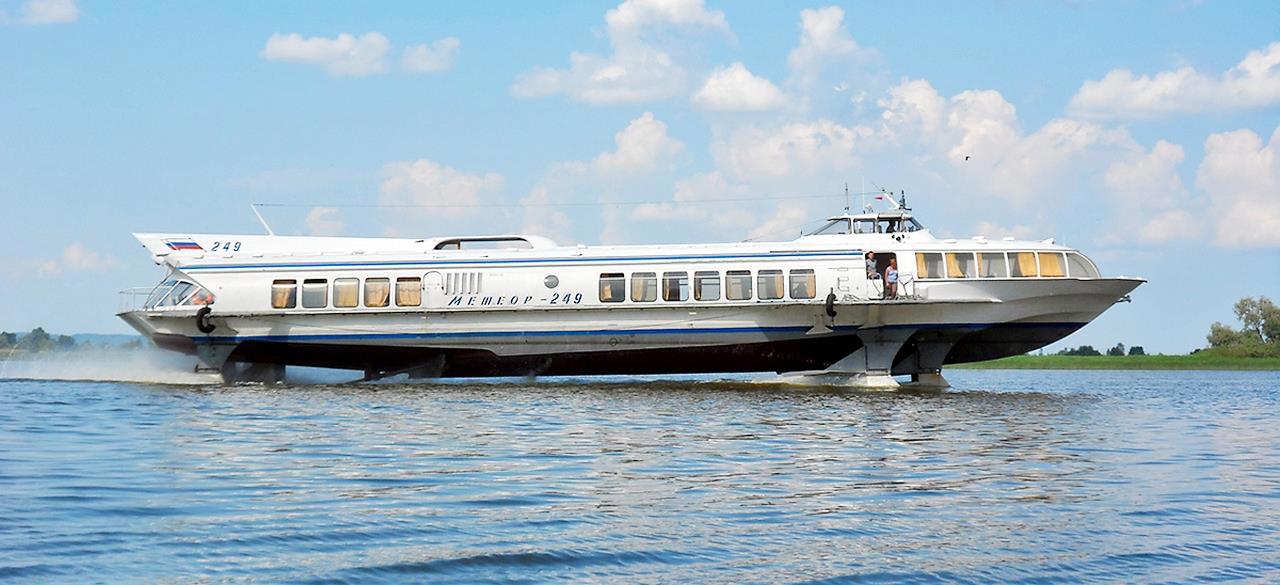 Вслед за «Ракетой» у речных причалов появляется стремительный «Метеор». Пассажиров – 124 человек, скорость 65 (максимальная – 108 км в час) км в час, дальность плавания – 600 км: