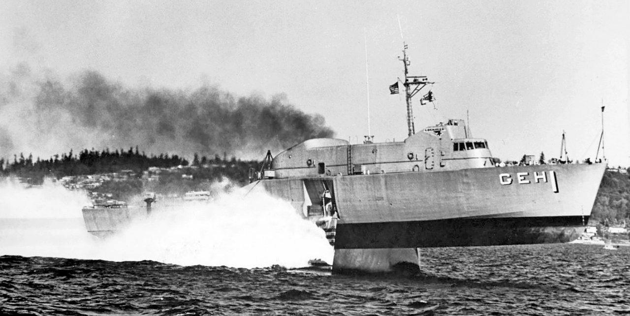 Но не все исповедовали минимализм в боевом флоте. Американцы отнеслись к делу куда серьёзнее. Вот, например, катер на подводных крыльях USS Plainview (AGEH-1):
