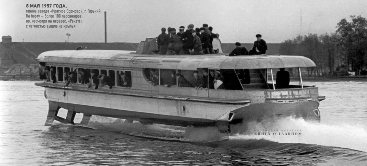 Алексеев создаёт проект пассажирского катера на подводных крыльях. Он показывает его через голову непосредственных начальников высшему руководству страны и находит там понимание. За него горой встаёт заводской партком. Частично энтузиастам подводных крыльев помогло активное движение в этом направлении за границей. После разгрома нацисткой Германии фон Шертель и Заксенберг утекли со своими идеями в Швейцарию и организовывают там фирму Supramar. Их торпедные катера никому не интересны и в 1952 году они строят катер 14-метровый РТ-10 (Freccia d’Oro) на 32 пассажира, которых катают по озёрам со скоростью до 64 км в час:
