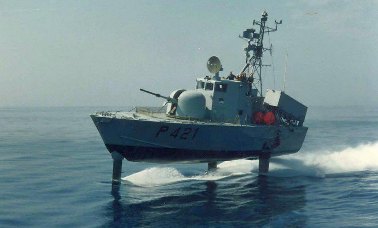 Большая серьёзная машина. Водоизмещение – 315 т; длина – 67,21 м; ширина – 12,32 м; скорость – до 115 км в час с двумя газовыми турбинами по 17000 л.с.; экипаж 20 чел., вооружение – два 324-мм трехтрубных аппарата, РЛС и сонар. Глубокопогруженная крыльевая система с электронным управлением позволяла катеру отлично плавать при волнении в 6 баллов. Вооружения маловато вообще-то. От самолётов, например, вообще защититься нечем, но в целом хорошая машина, но… в серию всё же не пошла. Но зато можно посмотреть на лёгкость, даже своеобразную элегантность внешнего вида катера. Он больше похож на прогулочную моторную яхту, чем на боевой корабль.