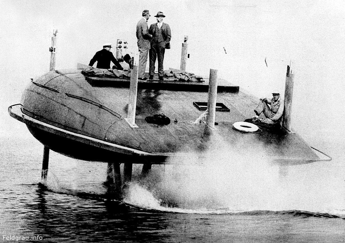Занималась фирма и боевыми катерами, разумеется. В частности военным предлагали целый ряд проектов по строительству обычных и ныряющих торпедных катеров на подводных крыльях. Но строить их по разным причинам не стали. Осторожность военных в этом вопросе вполне понятна – сколько-нибудь продуманной теории подводного крыла тогда ещё не существовало. Проектировщики двигались вперёд буквально ощупью. Их изделия должной надёжностью не отличались. Были проблемы с продольной устойчивостью на ходу, на волнении, сложности с манёвренностью. Но иногда жизнь, наступающая на Европу с востока, заставляла делать решительные шаги. Так в 1944 году был спроектирован быстроходный катер на подводных крыльях с грузоподъёмностью до 20 тонн и скоростью до 74 км в час. Назначение – прорывать блокаду для доставки дефицитных материалов для продолжения войны.