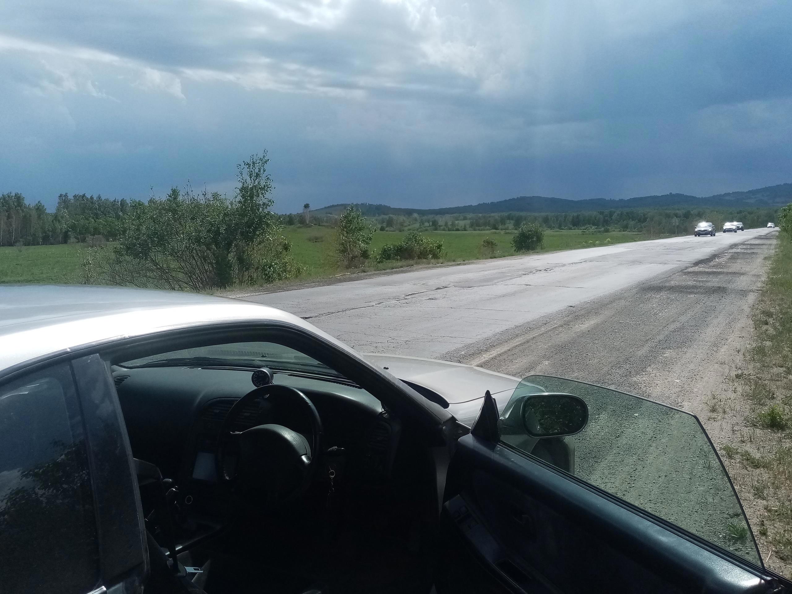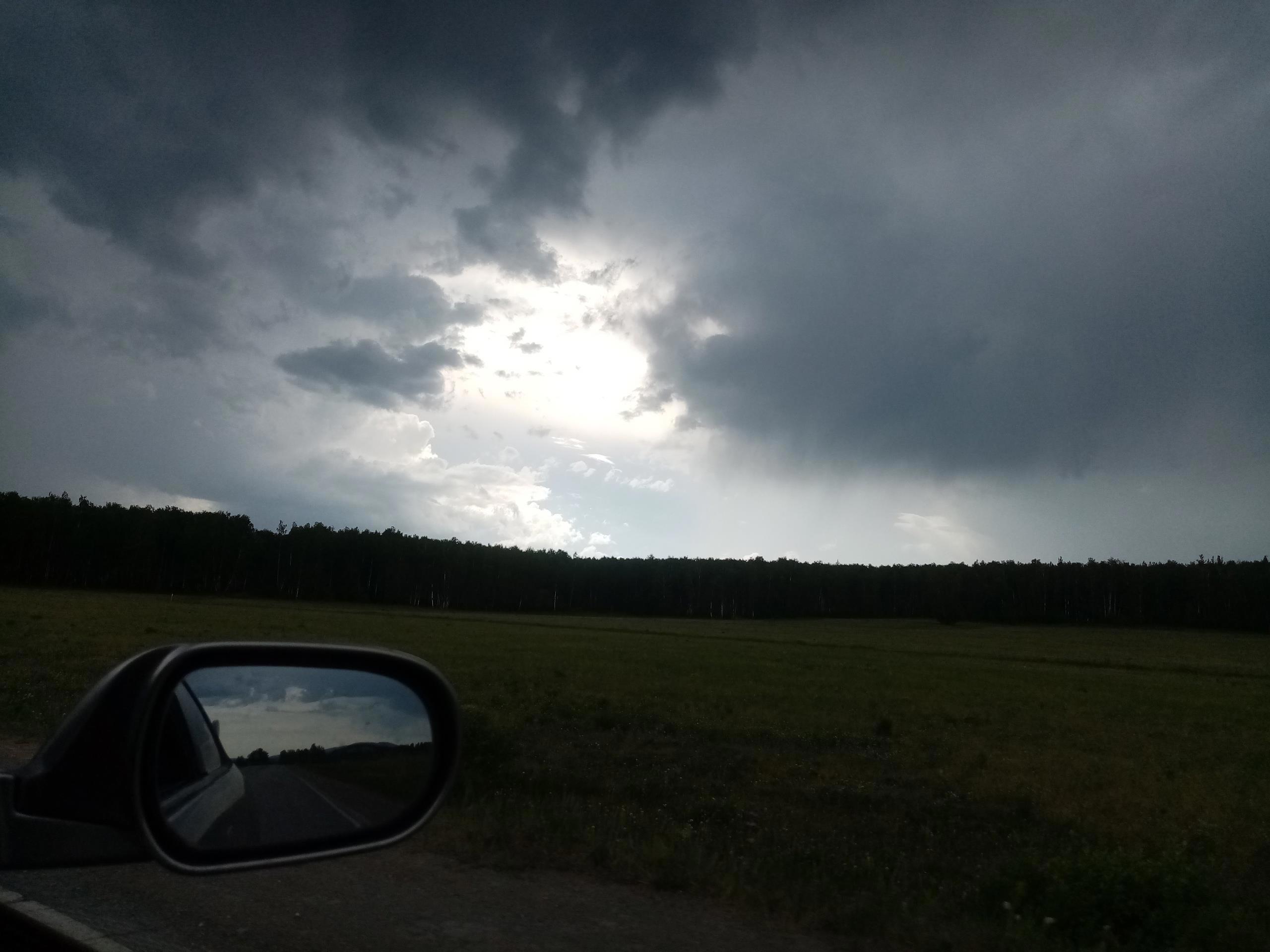 Дальше чем ближе подъезжал к Учалам, тем темнее становилось него, и чаще сверкали молнии. В Учалах 2 раза полило ливнем, и потом ещё на обратном пути поливало по чуть чуть...