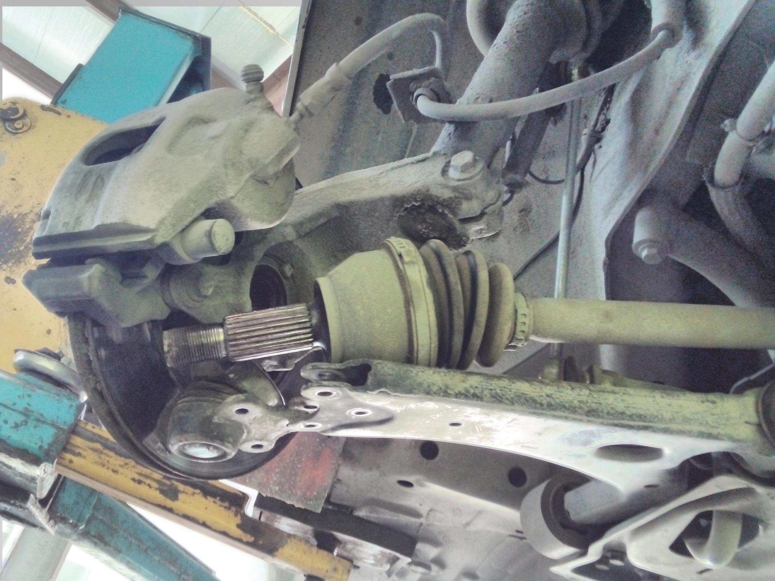 Собралось обратно всё за 20 минут. Итого времени ушло 2.5 часа. А всё потому, что прессом подшипник не выдавить, потому что упереть кулак не во что, там ещё кожух тормоза мешается, и что-то мне подсказывало что если бы и получилось, то подшипник потащилы бы за собой алюминий, и кулак осталось бы только покрасить, и выкинуть. Вот не люблю я делать машины с алюминиевыми деталями подвески...