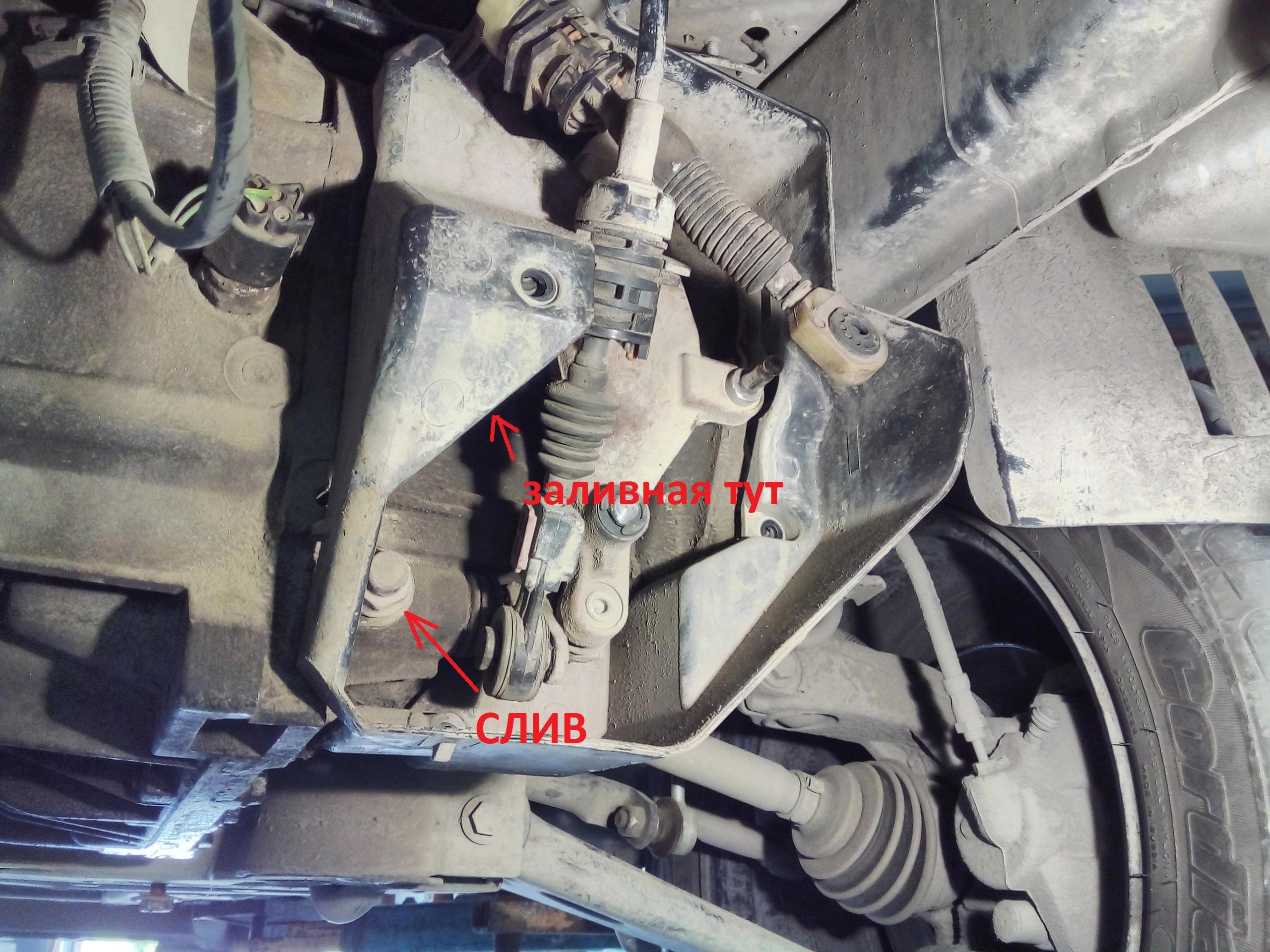 Начинаем всё с того, что сливаем масло с коробки, иначе оно потекёт, когда достанем привод. Определить, потечет масло или нет, можно посмотрев на уровень сальника и контрольной (заливной пробки). Если заливная ниже, чем низ сальника - не потечет. Выше - потечет.