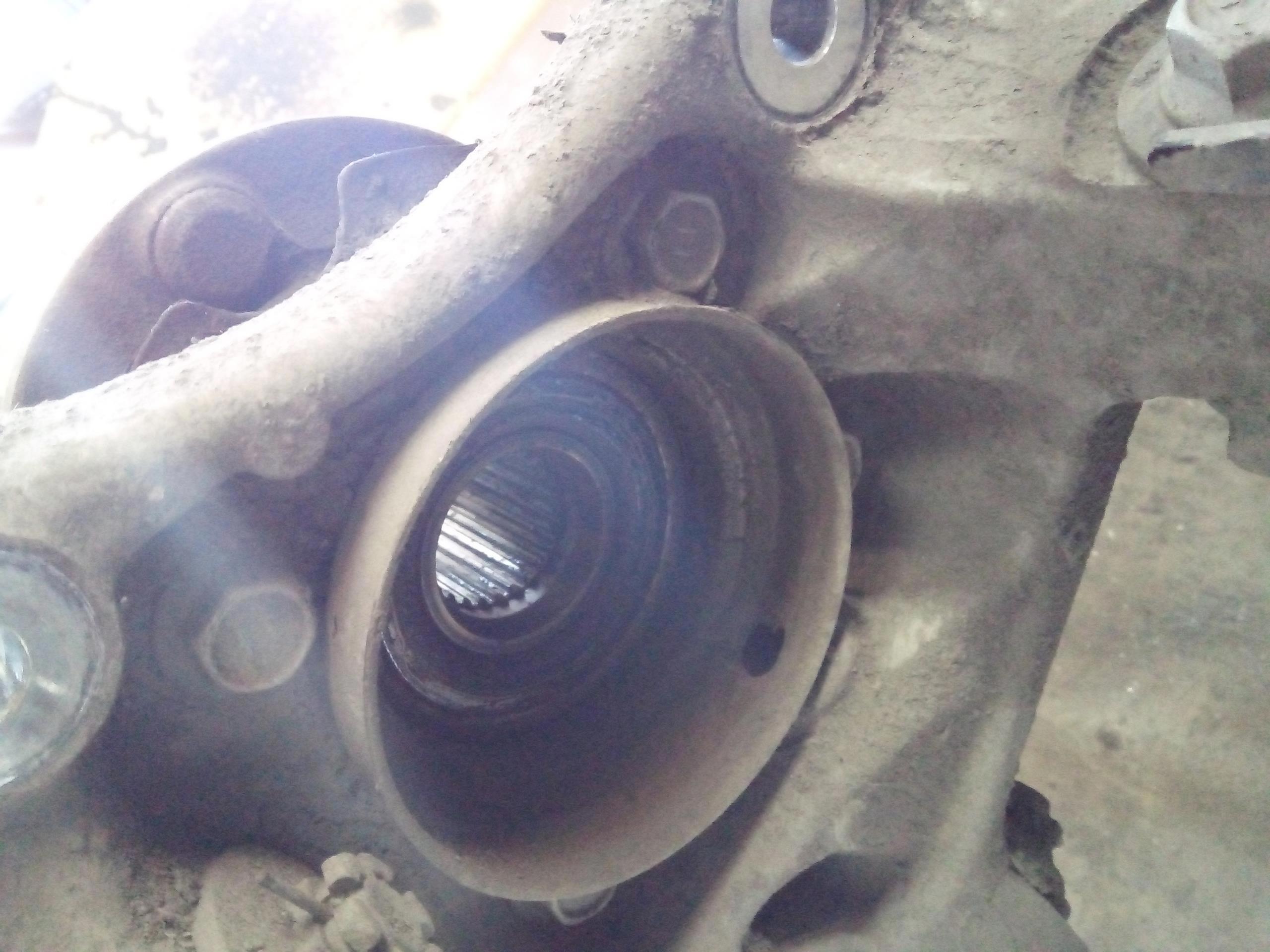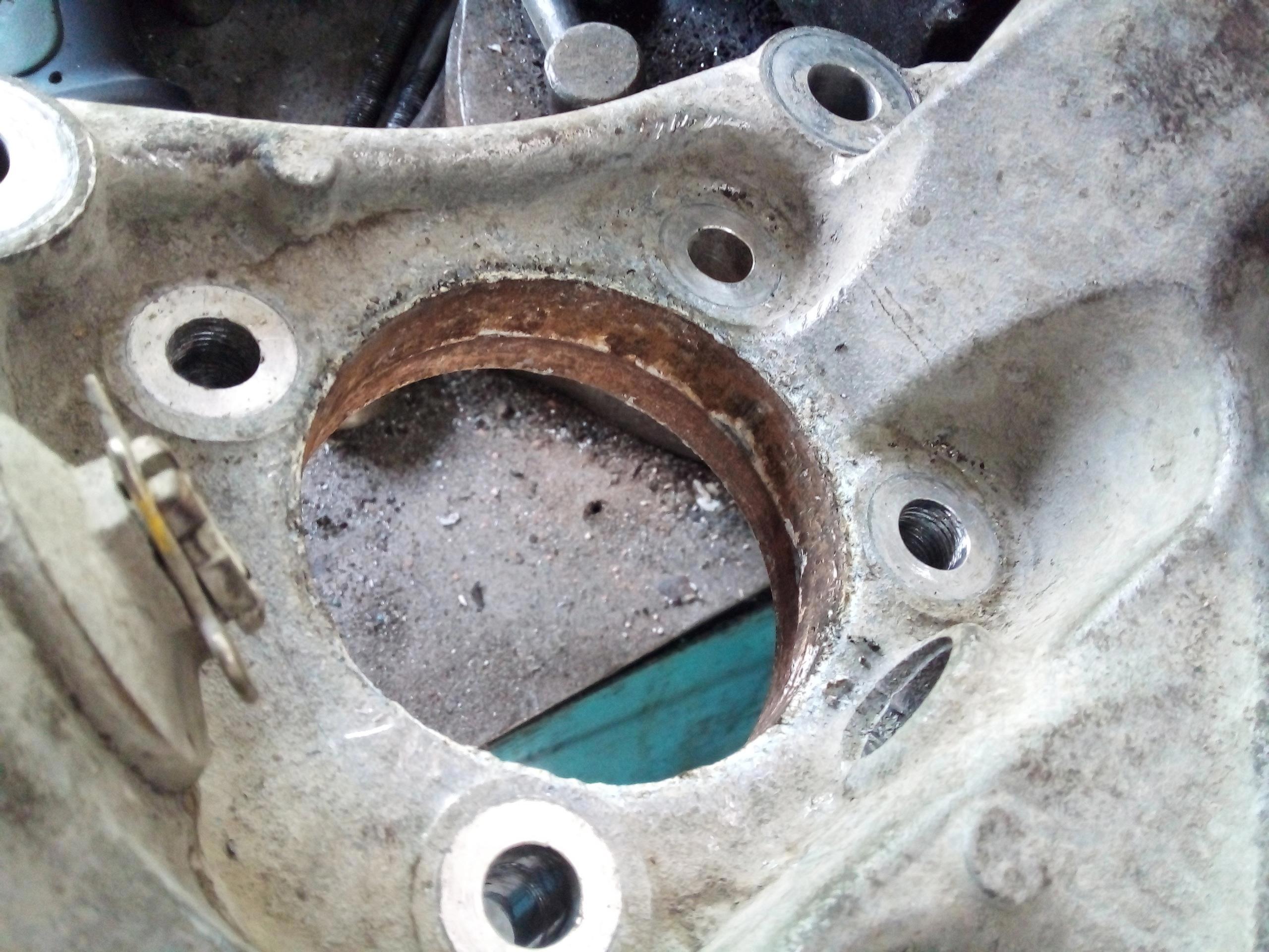 Казалось бы, вынимаем кожух гребенки АБС, откручиваем 4 болта и выбиваем корпус подшипника. Ага. Алюминий - чемпион по коррозии. Окисляется как последняя тварь, и приростает к стальным деталям намертво. Я этот кожух выковыривал полчаса, потом ещё час грел и выбивал при помощи моториста Валеры сам подшипник огромным молотком, закрутив вместо родных болтов длинные шпильки со старых моторов, и лупя по ним.