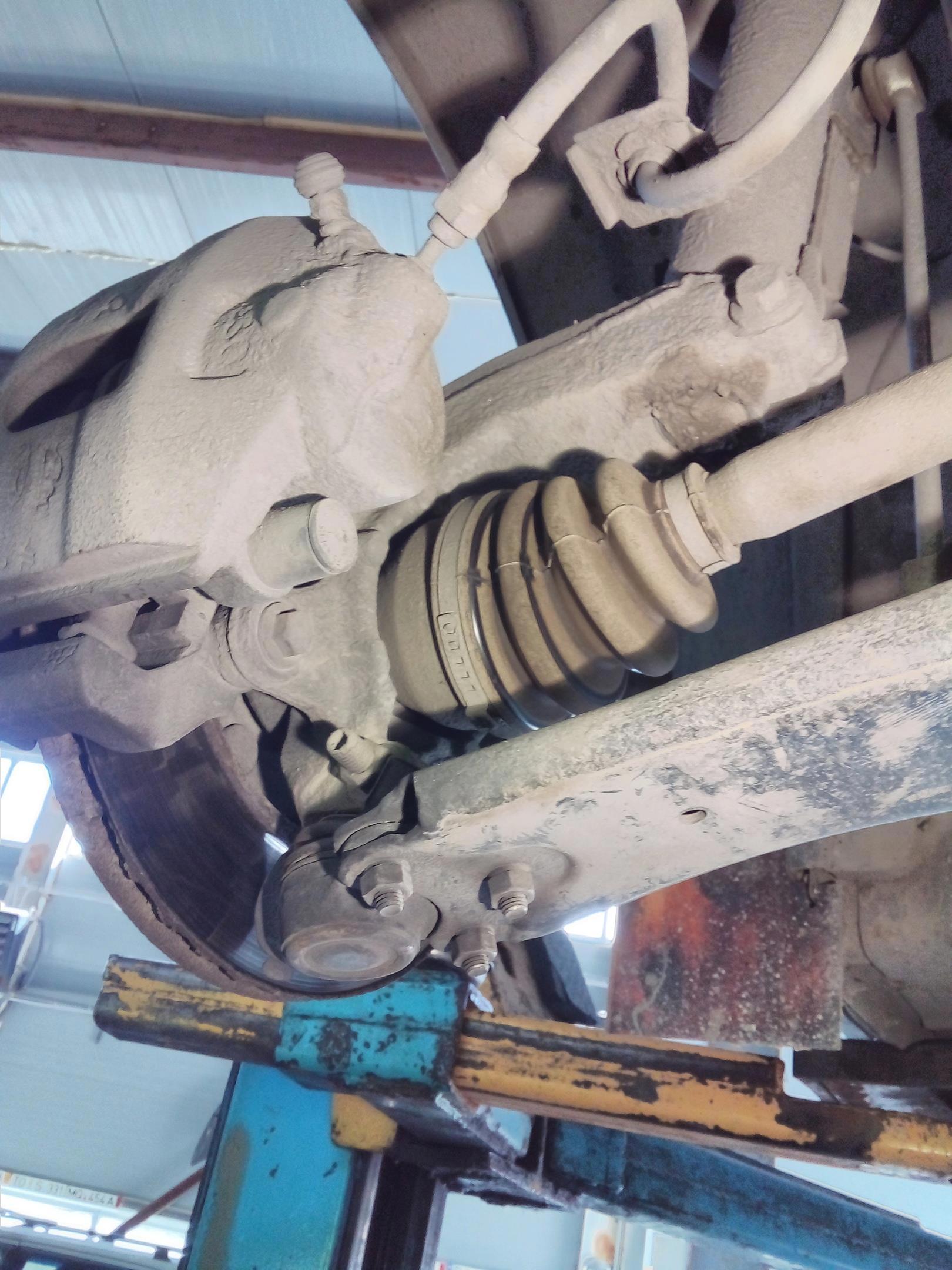 Приус приехал на замену переднего ступичного подшипника, который идёт в сборе со ступицей и прикручивается к поворотному кулаку на 4 болта. И всё бы ничего, но поворотный кулак - алюминиевый. Откручиваем шаровую от рычага, выбиваем наконечник рулевой тяги, который стоит в стальной обойме. Лупить как по железному кулаку не пойдёт, погнётся всё к чертям собачьим, аккуратно обстучал сошку вокруг пальца шаровой, и она вынулась. Снял тормоз, тормозной диск, датчик абс, открутил гайку крепящую шрус привода к ступице, и вынул поворотный кулак.