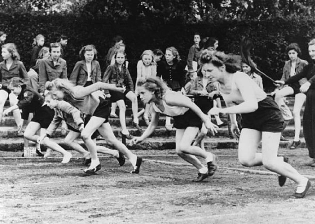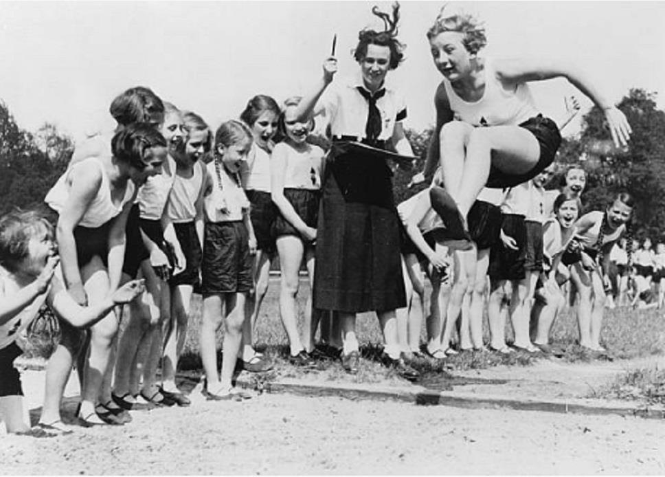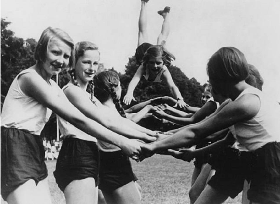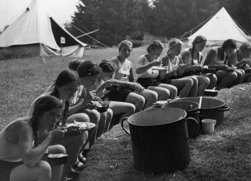 Девчонки из гитлерюгенда на обеде в летнем лагере.