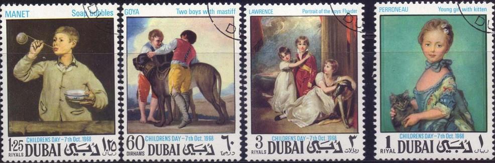 Набор почтовых марок Дубая. 1968 год. Живопись.