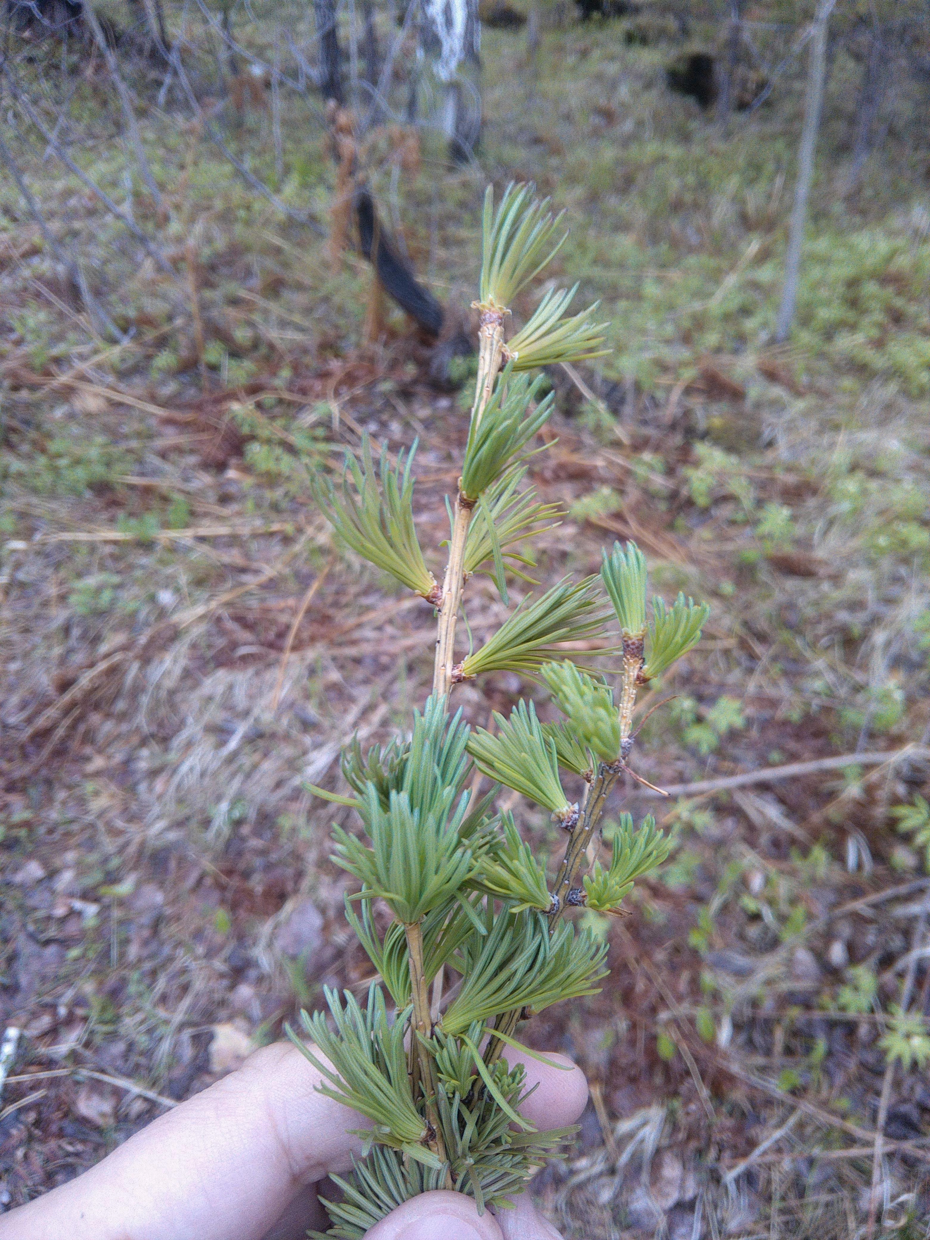 Между прочим, скажу я вам, это такая вкуснятина! Пока маленькие – аж сладкие. Пока я паслась в сосенках, муж прошёл подальше и принёс мне вожделенный лиственничный букетик…