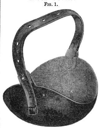 Эластичная подушка была сделана из индийской резины, выпуклой снаружи и вогнутой внутри. Накладка крепилась к руке у локтя или в любом другом месте, которому срочно требовалось обеспечить комфорт, кожаным ремешком, снабженным множеством петель для различных размеров/толщины рук.