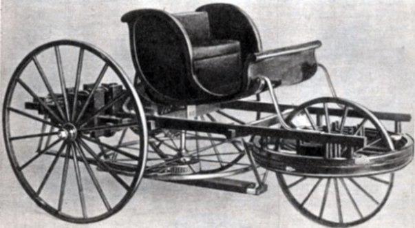 У этих фиакров ведущим, ясное дело, является заднее колесо - оно наиболее нагружено, а значит именно у него наилучшее сцепление с поверхностью. И это колесо - одно. Знатоки автопрома тут же сообразят - сложный механизм уравнителя скоростей на задней оси такому транспорту не нужен. А вот передние колёса небольшие, для устойчивости их два, оба поворотные через простой реечный механизм поворота.