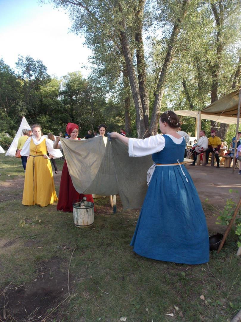 А это ответ тем, кто любит изображать народ Средневековья в серых одеждах. Мастер класс по окрашиванию тканей от милых дам. Как нам рассказали, чтобы получился ярко-синий цвет, ткань желательно предварительно выбелить.