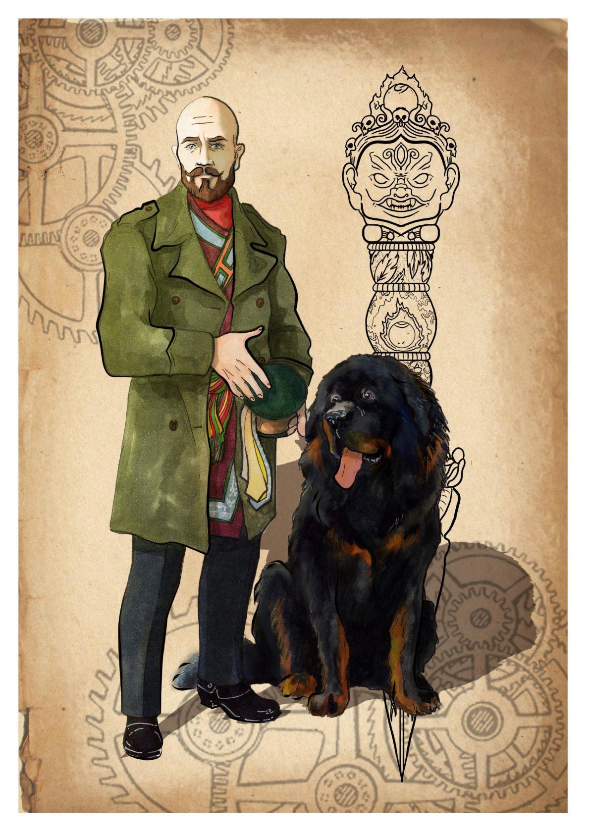 Художник Юлия Толстоусова замечательно воплотила в жизнь персонажей Эвридики. Но в портрете Виктора Хумпельна ее симпатии явно отданы тибетскому мастифу Рине.
