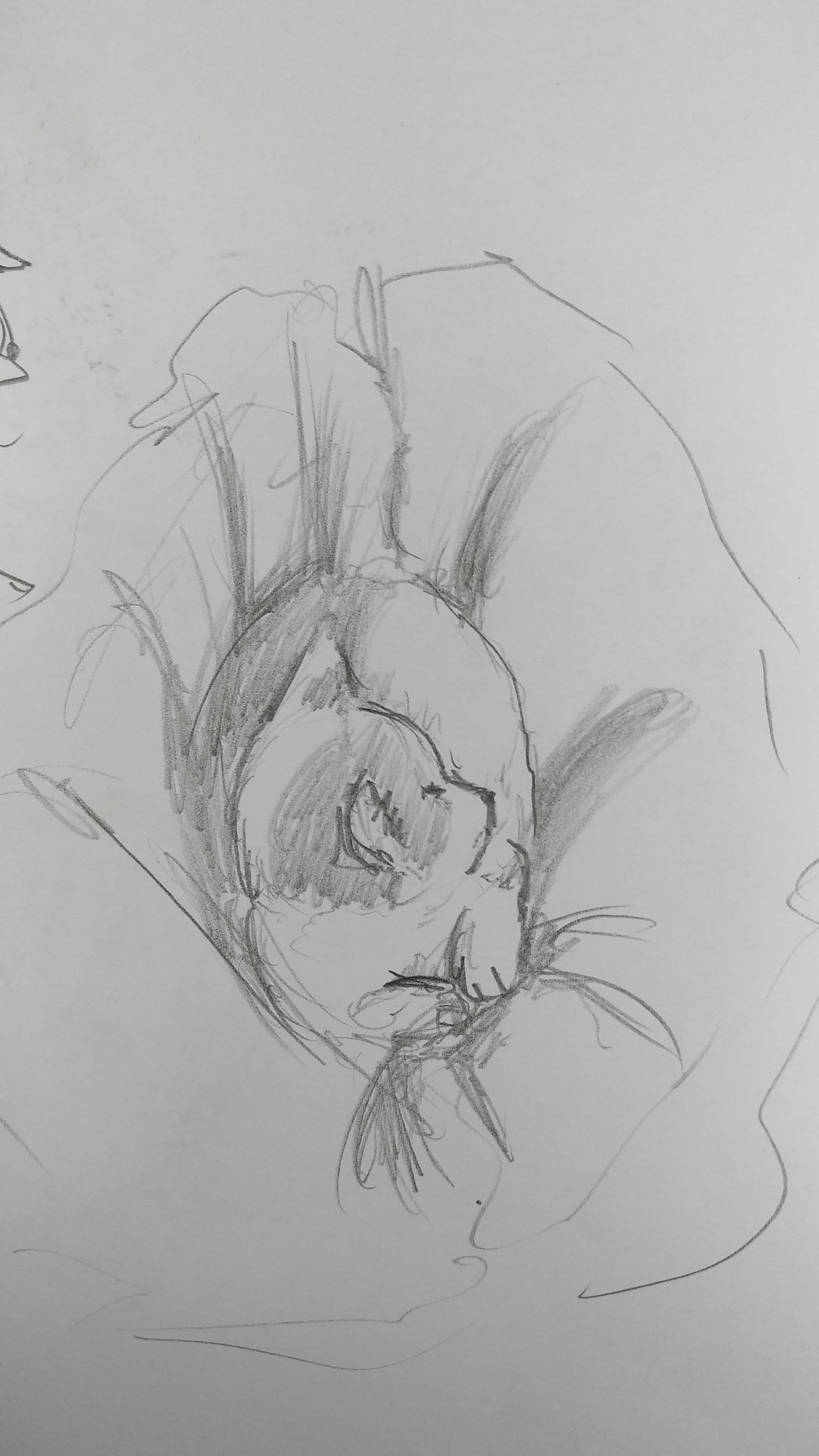 В доме появился котёнок, серенький такой, пушистый, совсем маленький, на ладошке умещался, ещё даже прыгать не умел. Забраться на кровать ему трудно, приходилось его поднимать. Котёнок ел только с ладошки, играл со своим хвостиком и бегал за фантиком, привязанном на нитку.