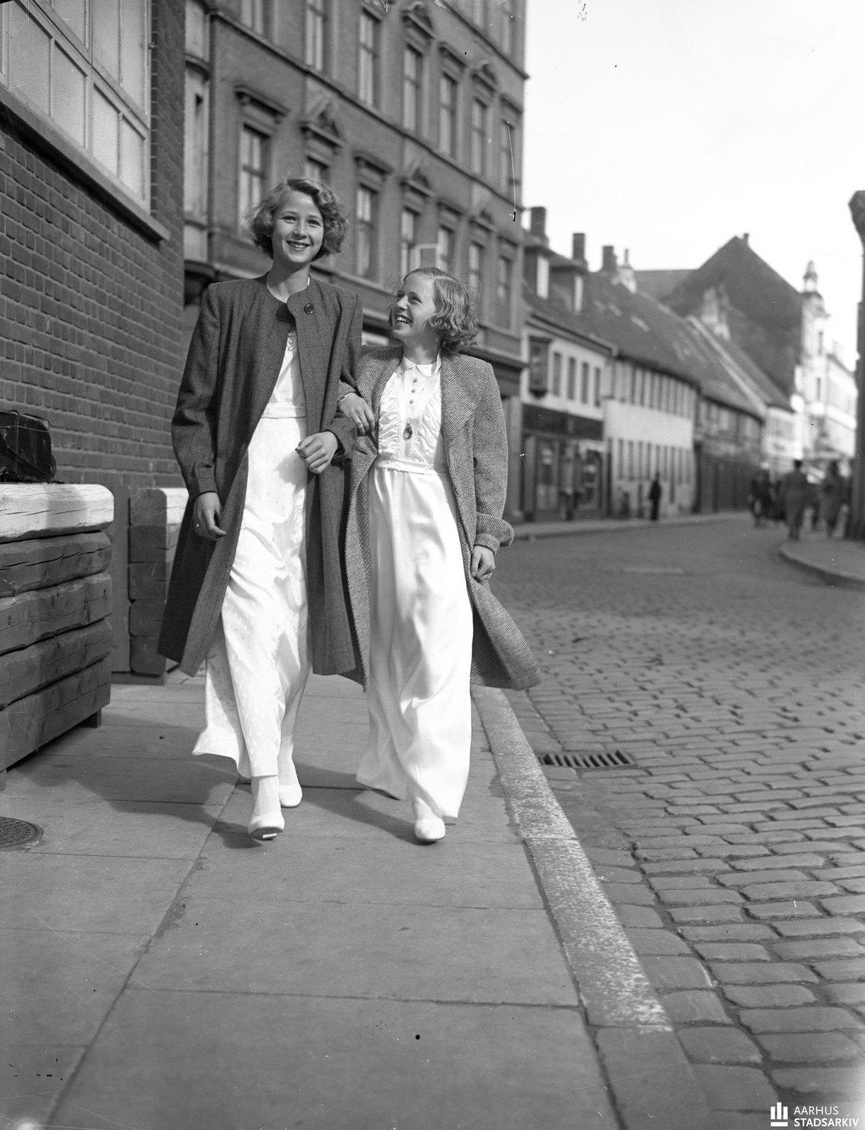 1940. Вестергаде. Две девушки идут рука об руку по улице