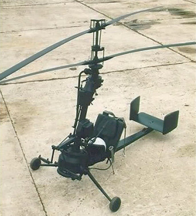 Что, слишком большой? Камовцы впоследствии сделали для военных машинку поменьше. Мало того. Она была раскладная и укладывалась в тубус небольших размеров. Сборку мог производить один человек. Назывался этот раскладной минивертолёт Ка-56. Вот он: