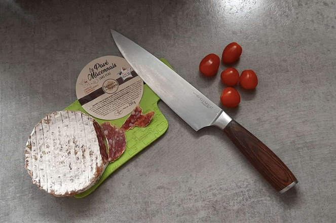 И все бы ничего, но эта колбаса такая твердая, что нарезать её тонко очень сложно! А если нарезать не тонко, то её можно только сосать, но прожевать не получится.