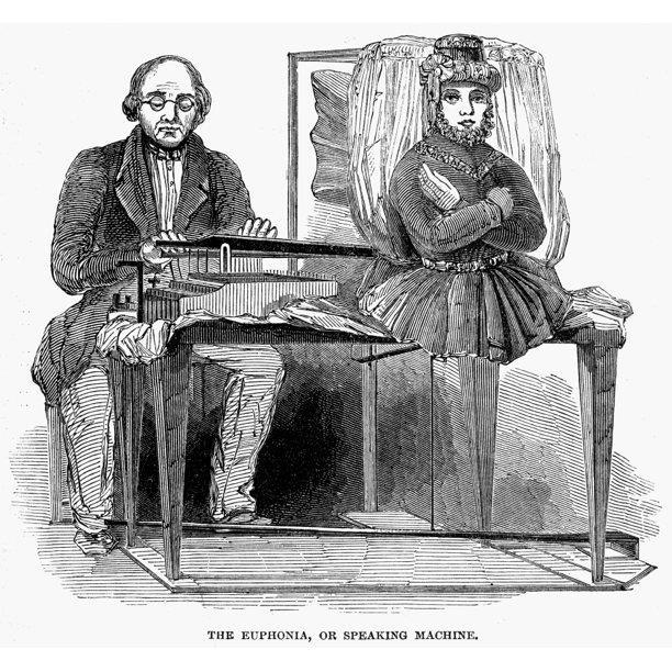 Даже после продвижения Барнумом (Эвфония оставалась частью репертуара Барнума в течение следующих нескольких десятилетий — видимо имеется в виду тот инструмент с большим рупором о котором писала выше...), Фабер и его Эвфония приносили мало прибыли, часто становясь объектами насмешек. Одним из немногих приверженцев Эвфонии был шотландский профессор речи по имени Мелвилл Белл. Его сын, знаменитый Александр Грэм Белл, предпринимал различные попытки воспроизвести речь, наиболее успешная из которых привела к появлению его устройства, известного как телефон.