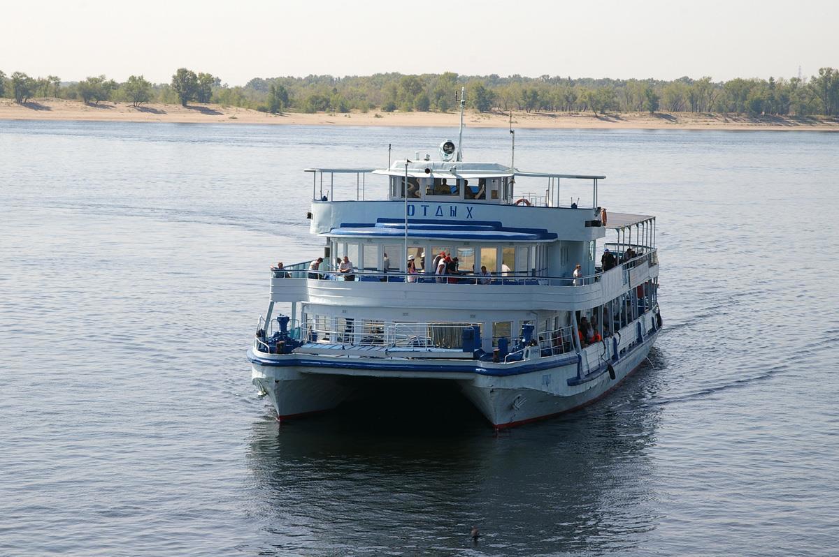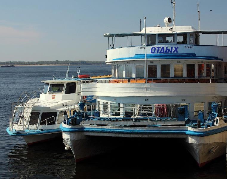 Автор: ЛиСиЦаПрогулочный теплоход "Отдых" был построен в единственном экземпляре в 1963 году. Двухпалубный катамаран шириной в тринадцать с лишним и длиной в сорок четыре метра покатал не одно поколение волгоградцев и гостей Города. В вечернее время на верхней палубе проводились и проводятся дискотеки. Какой же маленькой по сравнению с ним кажется пришвартованная рядом "Москва":