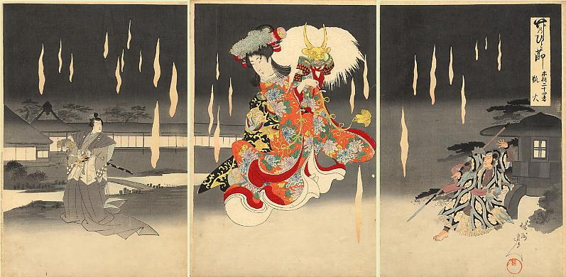 И все же Кацуёри открыл свое настоящее имя любимой и во имя мира попросил украсть шлем из сокровищницы отца и передать ему. Он обещал, что после возвращения шлема возможны будут перемирие и их союз.