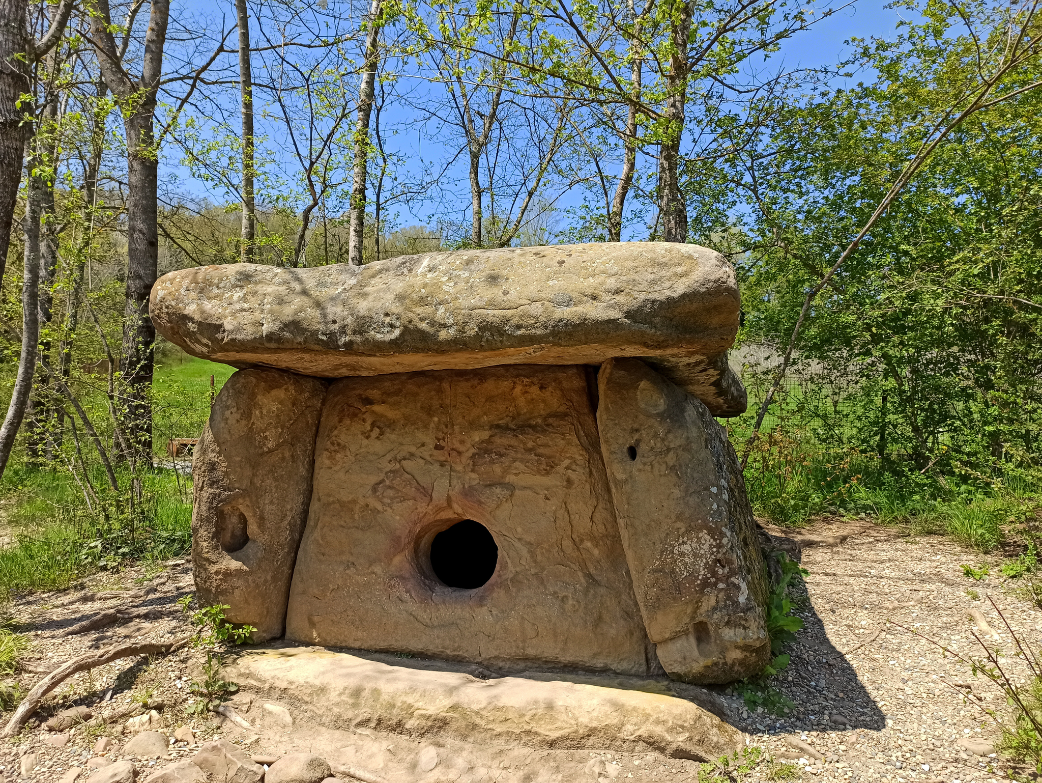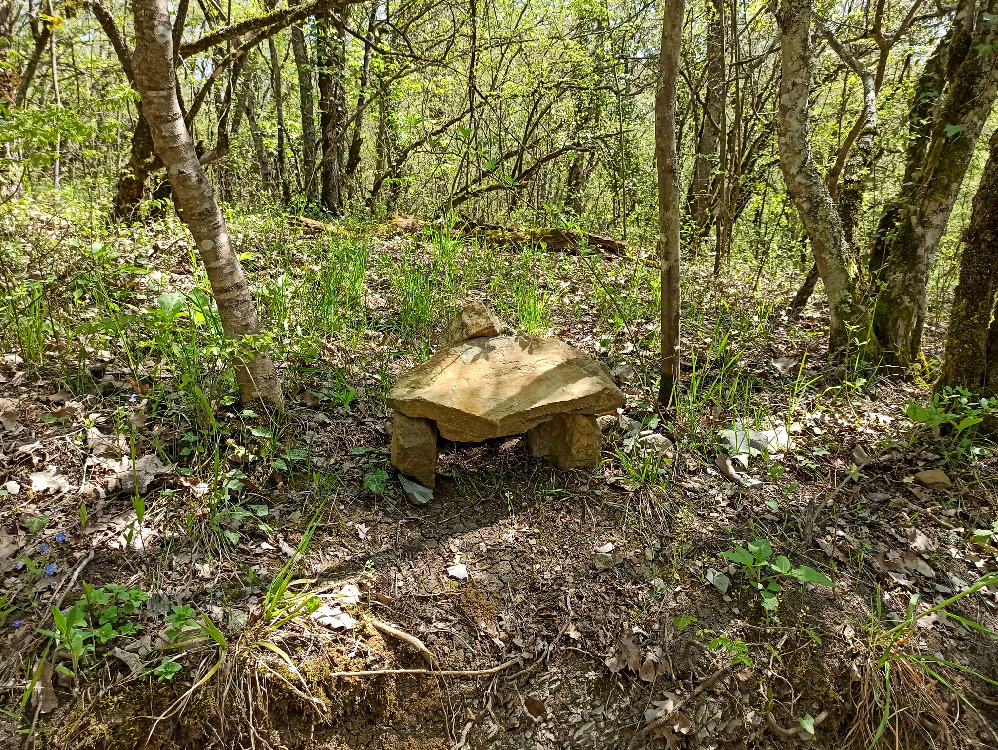 Первый дольмен с двух ракурсов. Самый близкий и самый легкий для просмотра. Деревянные подпорки, как я поняла, добавлены позднее.