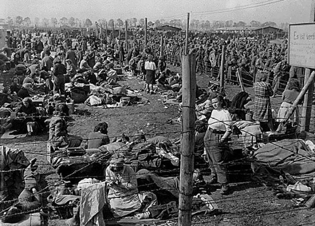 Американский лагерь для военнопленных немцев. Блок для пленных немок. Простое решение для расплетания немецких хитровывернутых положений о невоеннослужащих военнослужащих женщин. "В форме? Со знаками различия? Выполняла военную специальность?" - добро пожаловать в лагерь!