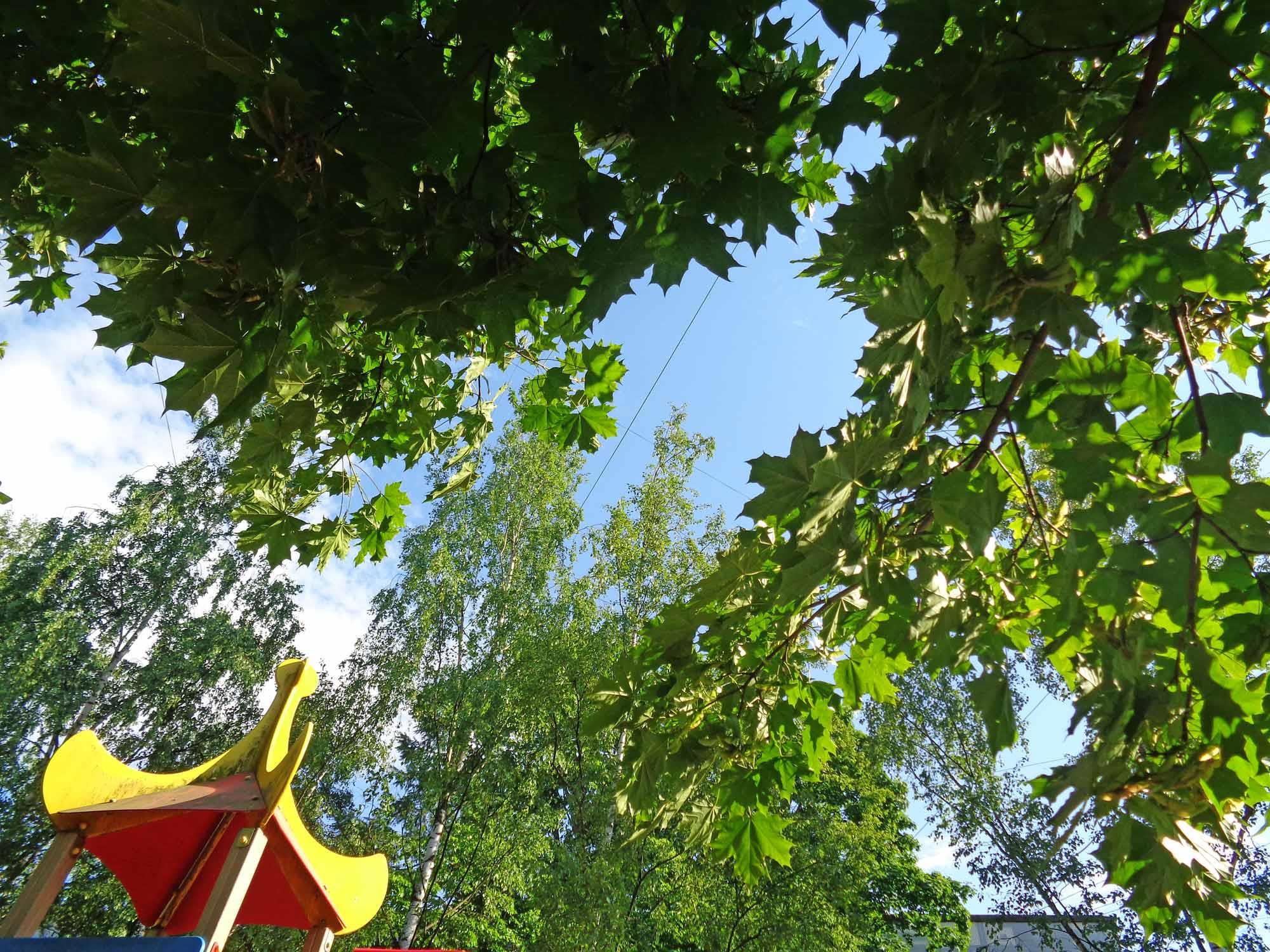 А над головой - лес! Хотя снято, сидя на лавочке, рядом с детской площадкой.